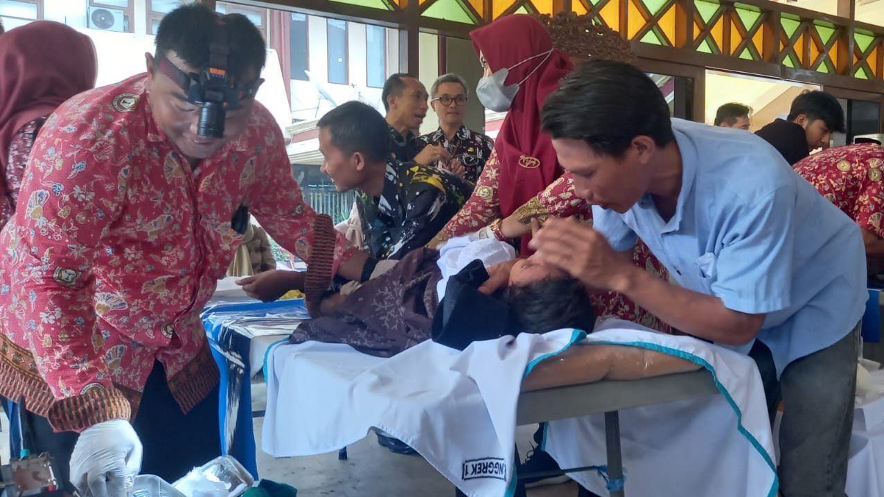 Sunatan massal dilaksanakan dalam rangka memperingati HUT ke 53 Korpri. Para peserta sunatan massal menjalani proses sunat atau khitan dengan didampingi orangtua maupun kerabat.Beberapa tampak menangis keras, sehingga harus ditenangkan orangtuanya.