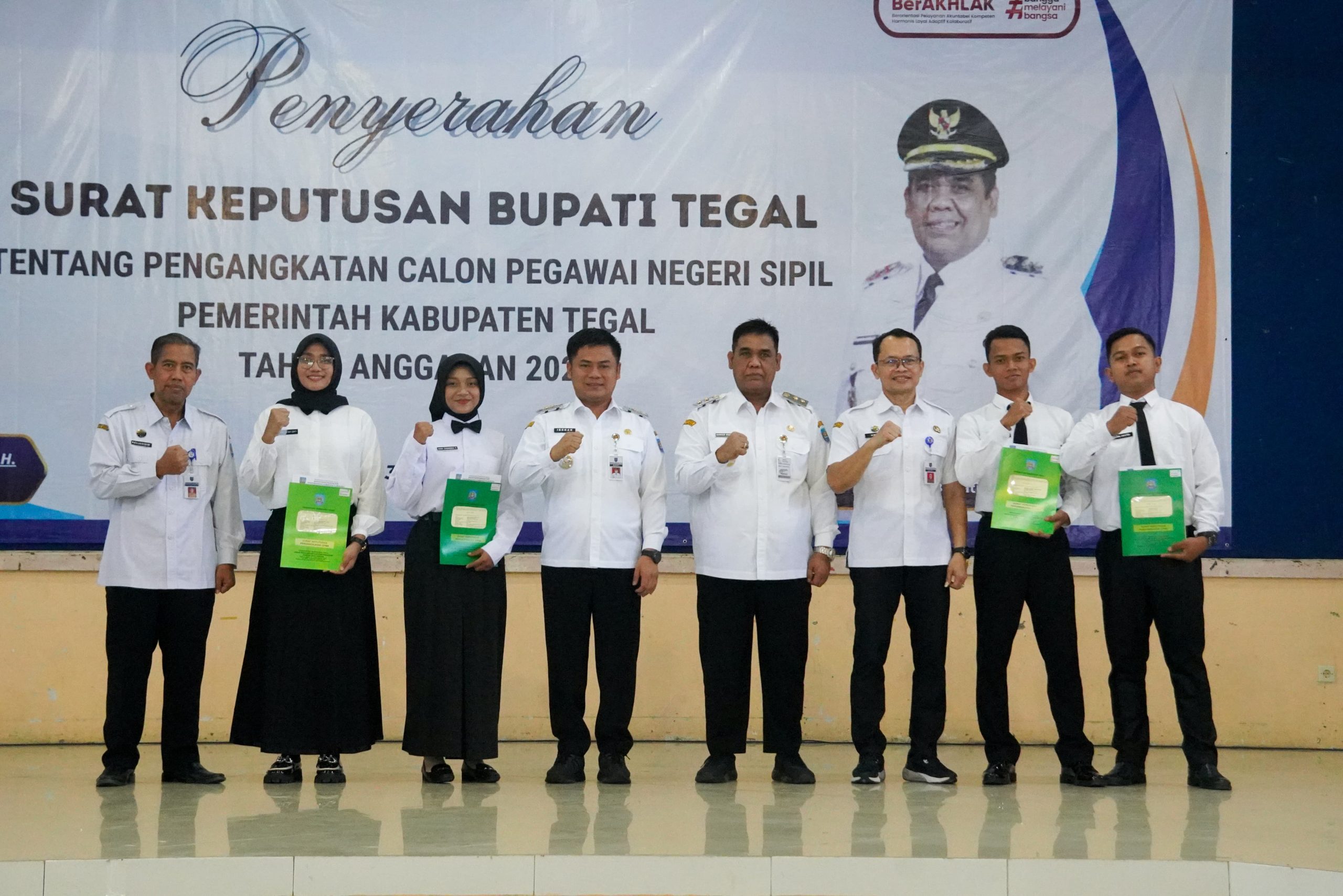SK pengangkatan CPNS diserahkan Bupati Tegal Ischak Maulana Rohman di Gedung Korpri Slawi.