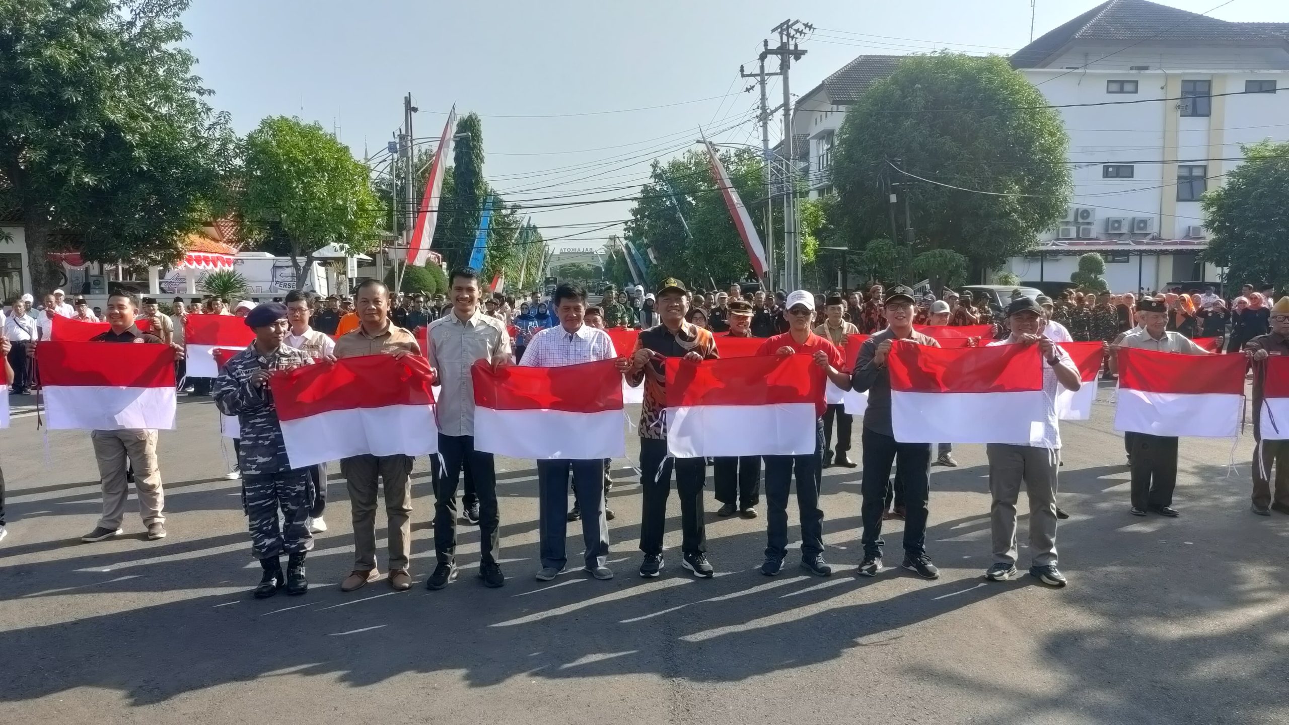 Pembagian dilakukan dalam apel pagi bersama, bertajuk pembagian 10 juta bendera merah putih di halaman Pendopo Ki Gede Sebayu, Minggu (4/8/2024).