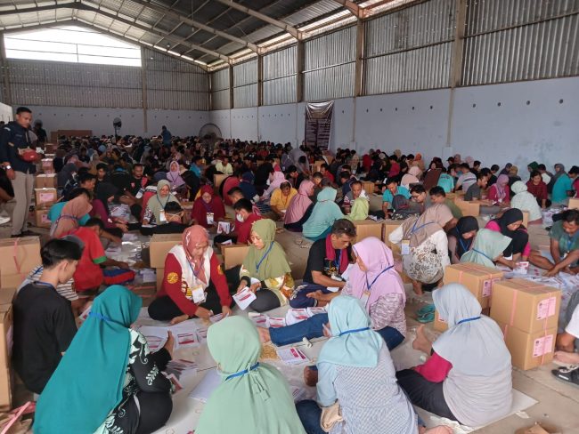 PEMALANG, smpantura – Komisi Pemilihan Umum (KPU) Kabupaten Pemalang masih melakukan sortir dan pelipatan surat suara untuk Pemilu tahun 2024. Hasil sementara sortir dan pelipatan diketahui ada sekitar 4.971 lembar surat suara presiden dan wakil presiden dinyatakan rusak oleh KPU Pemalang.