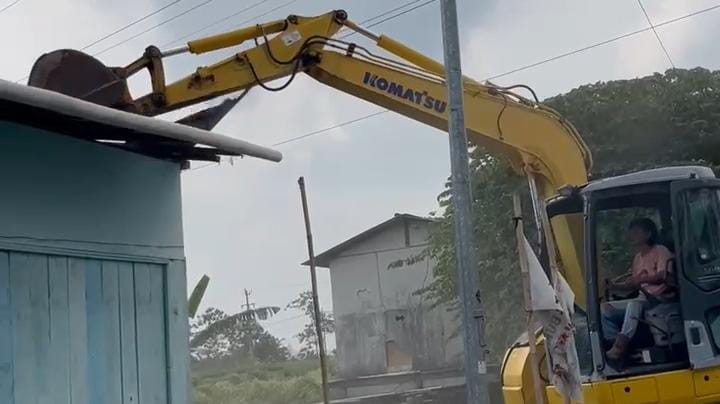 Sebanyak delapan unit bangunan, yang umumnya dimanfaatkan sebagai tempat usaha, dibongkar secara mandiri oleh pemiliknya. Satu unit alat berat juga dikerahkan untuk membantu proses tersebut.