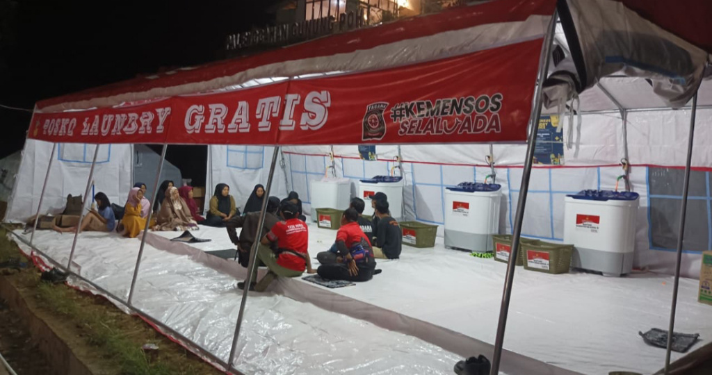 Tenda laundry ini merupakan bantuan dari Kementerian Sosial (Kemensos). Dari pantauan di lokasi, ukuran tenda cukup luas sehingga memberikan ruang cuci yang nyaman bagi warga.