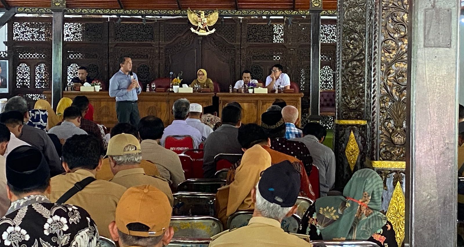 Perwakilan BRI cabang Brebes saat menyampaikan materi sosialisaai kerjasama Agen Brilink dengan KDMP di Pendopo Brebes.