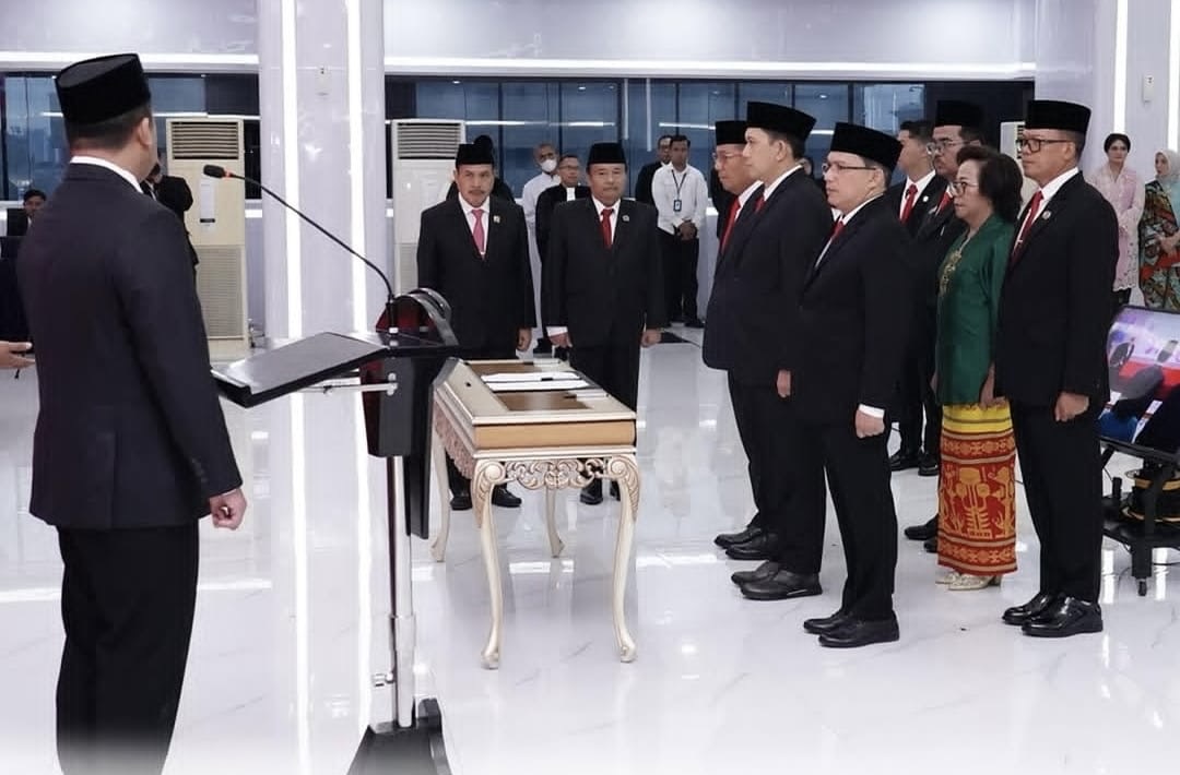Pelantikan dan pengambilan sumpah pejabat struktural dan fungsional di lingkungan Kementerian ATR/ BPN dilaksanakan Menteri ATR/Kepala BPN, Nusron Wahid, Senin (20/1/2025).