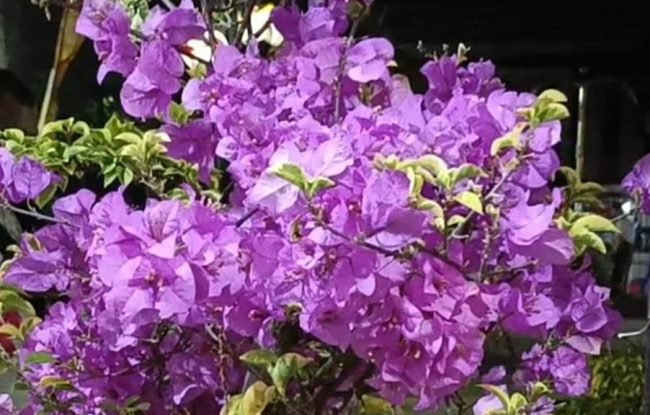 Saat ditemui di pameran tanaman di Taman Bungah Slawi, Kabupaten Tegal pada Jumat malam (28/6/2024), Sabarudin menunjukan tanaman bugenvil yang tumbuh bunga tiga warna. Warna dalam bunga itu, yakni ungu, putih dan kuning.