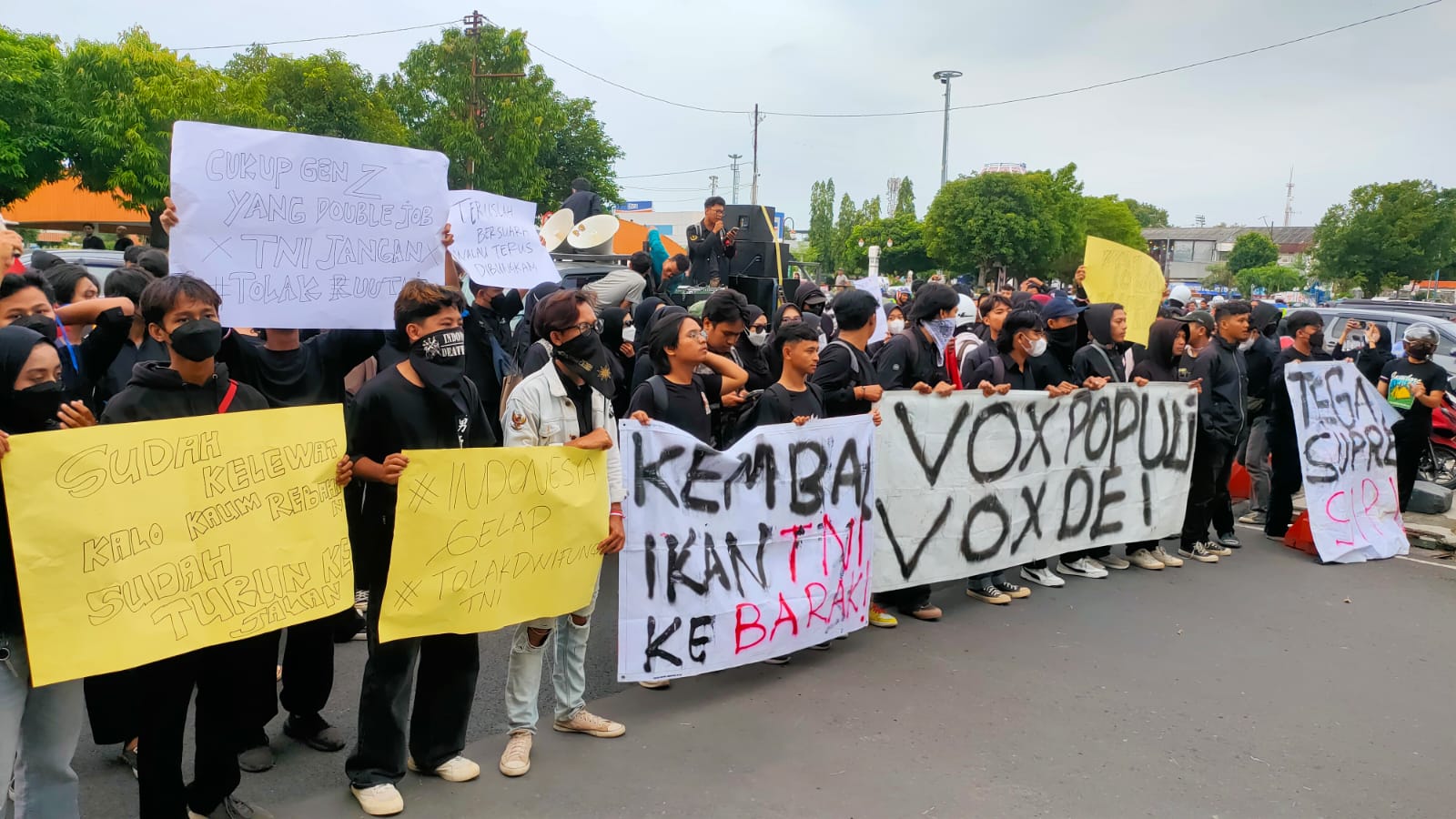 TEGAL, smpantura – Kelompok mahasiswa dan masyarakat di Kota Tegal menggelar aksi penolakan Undang-Undang (UU) TNI. Mereka melakukan long march dari Jalan Pancasila, Balai Kota Tegal dan Gedung DPRD Kota Tegal, Rabu petang (26/3/2025).