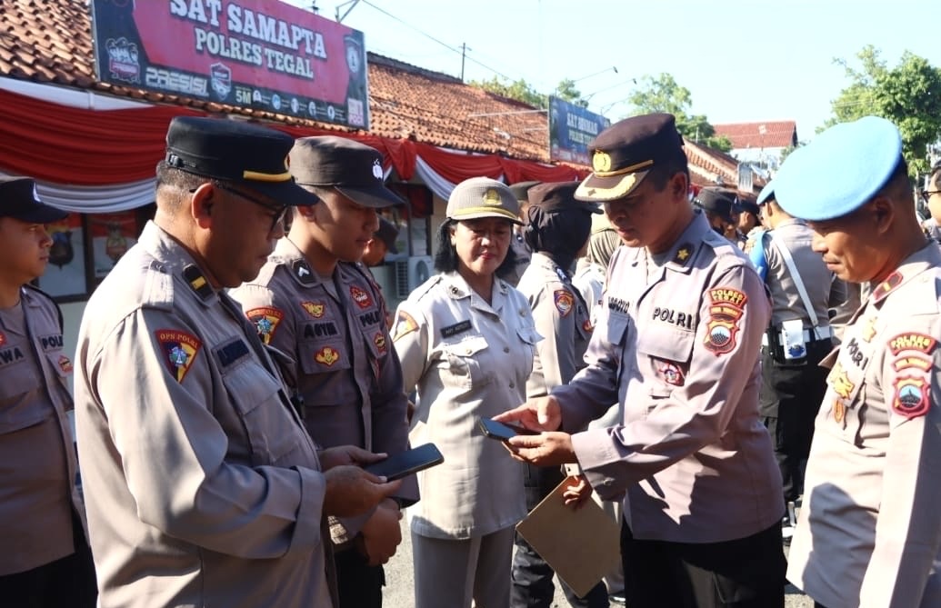 Mengantisipasi praktik judi online di lingkungan Polri, Polres Tegal mengambil langkah tegas dengan melakukan pemeriksaan telepon genggam seluruh personel.