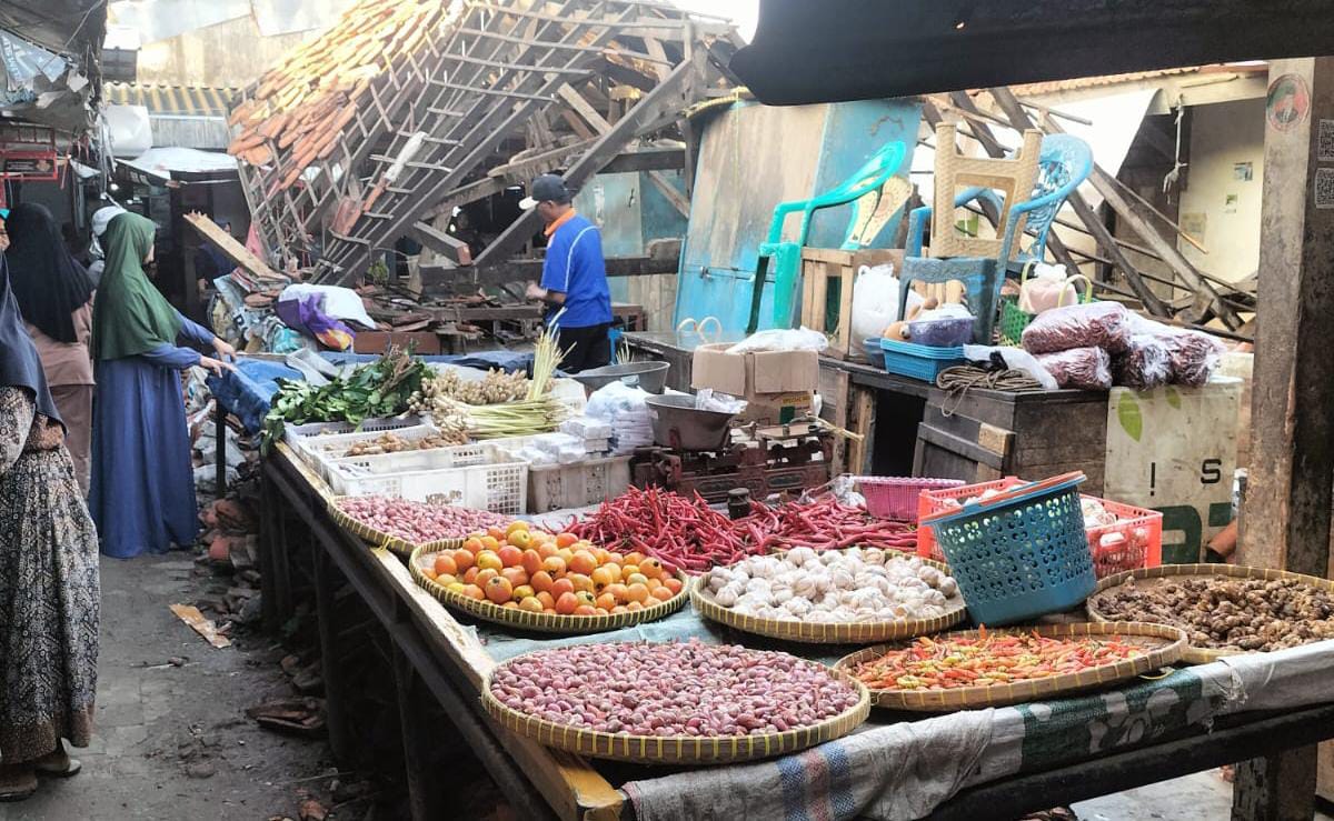 Atap Pasar Jatibarang Ambruk, Lapak Pedagang Dipindah ke Tempat Darurat
