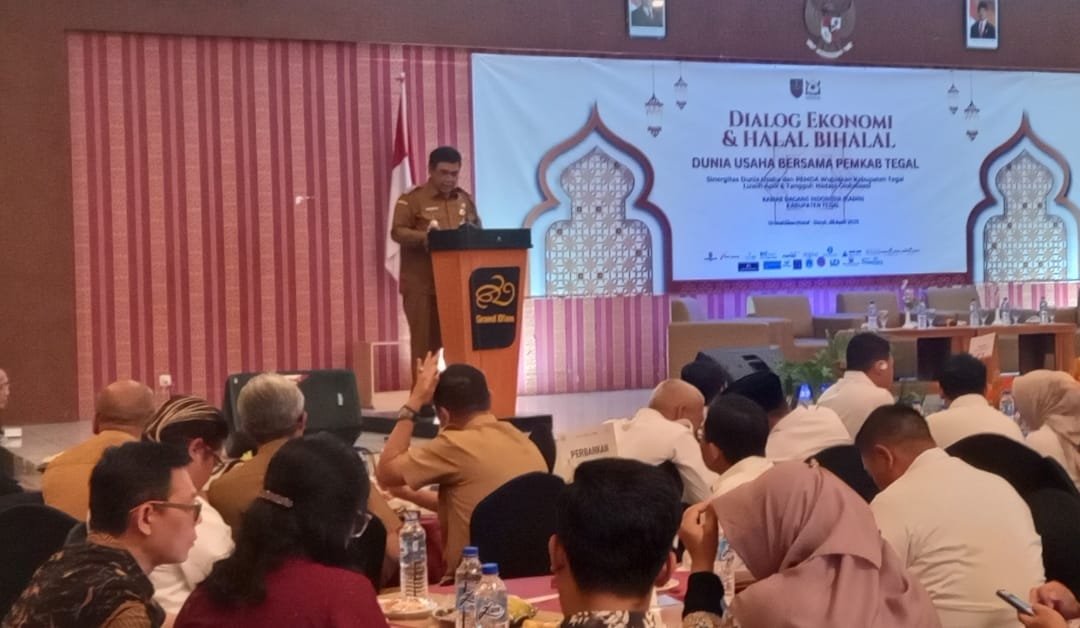 Demikian disampaikan Wakil Bupati Tegal Ahmad Kholid saat menghadiri Dialog ekonomi dan Halal Bihalal Dunia Usaha Bersama Pemkab Tegal di Syailendra Convention Hall Grand Dian Hotel Slawi, Senin(28/4/2025).
