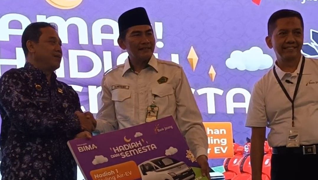 SLAWI, smpantura – Bank Jateng Cabang Slawi, Kabupaten Tegal kembali menyerahkan hadiah kepada pemenang Undian Tabungan Bima Periode II (Juli-Desember) Tahun 2024 di Hotel Gulala Guci, Selasa (29/4/2025). Hadiah utama berupa Mobil Wuling Air EV diperoleh oleh nasabah asal Kantor Cabang Bank Jateng Slawi, atasnama Nurul Laela asal RT 23 RW 5 Desa Kambangan, Kecamatan Lebaksiu.