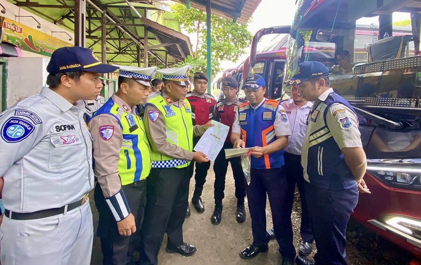 ”Kita lakukan inspeksi keselamatan dengan menggelar ramp check terhadap kondisi bus sebelum digunakan untuk mengangkut penumpang. Petugas gabungan dari Satlantas Polres Tegal Kota dan Dishub melakukan pengecekan kondisi bus,” terang Kasatlantas Polres Tegal Kota AKP Agus Joko Guntoro.
