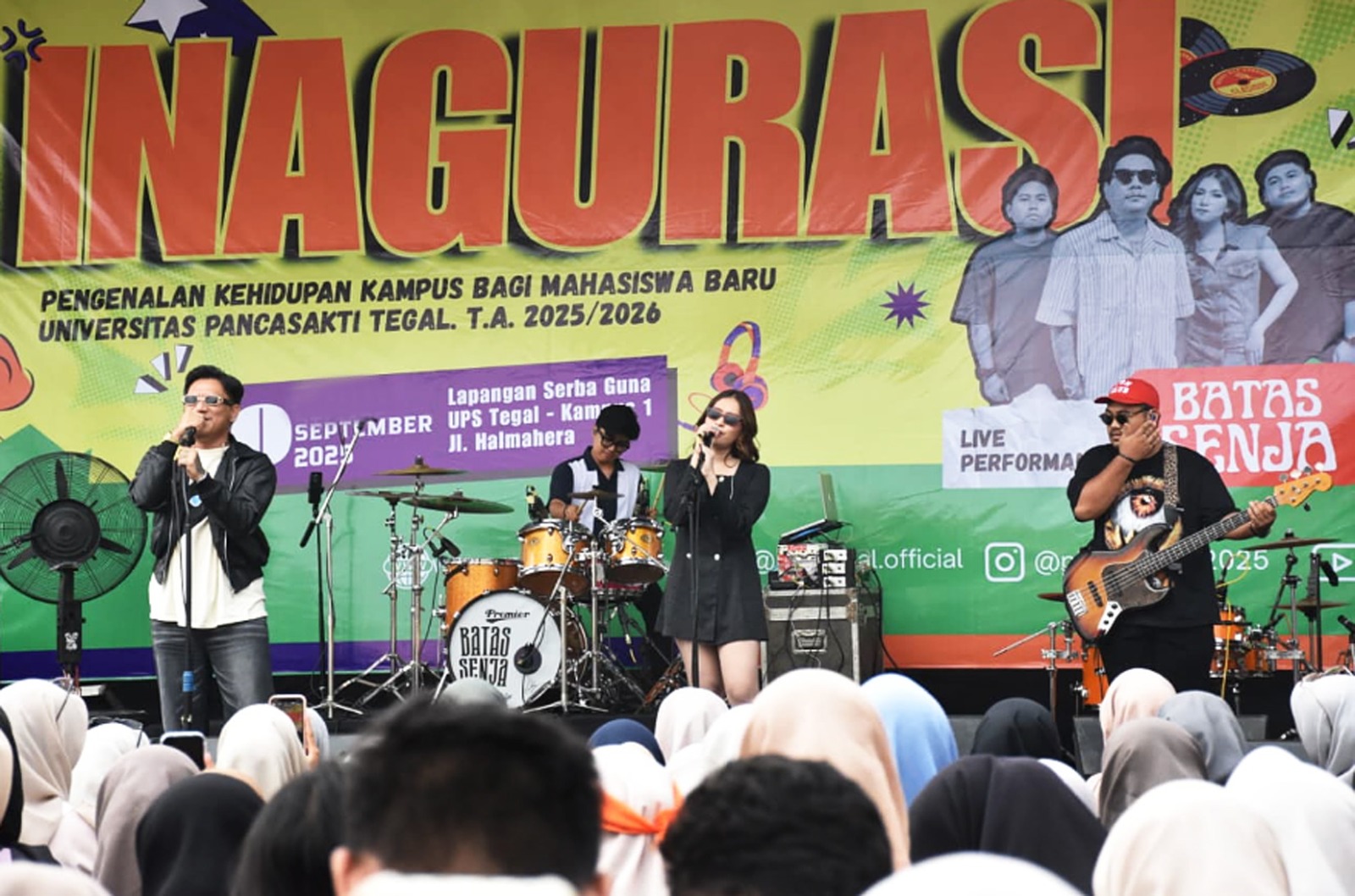 TEGAL, smpantura – Ribuan mahasiswa baru Universitas Pancasakti (UPS) Tegal yang sebelumnya merasa jenuh, sibuk, dan lelah, akhirnya terhibur berkat penampilan memukau dari Batas Senja Band. Grup musik ini sukses mengguncang kampus terbesar di Pantura Barat Jawa Tengah dengan aksi panggung mereka.