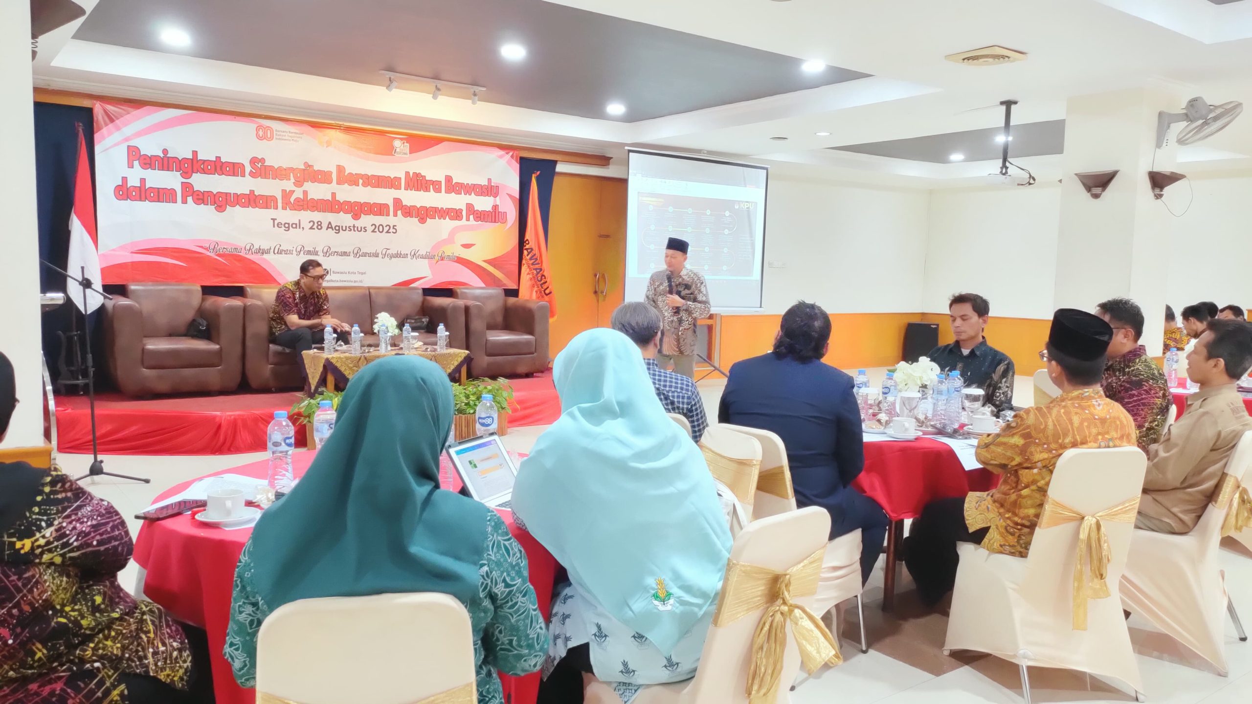 TEGAL, smpantura – Badan Pengawas Pemilu (Bawaslu) Kota Tegal, menggelar kegiatan peningkatan sinergitas bersama mitra Bawaslu dalam rangka penguatan kelembagaan pengawas Pemilu, di Plaza Hotel Tegal, Kamis (28/8/2025).