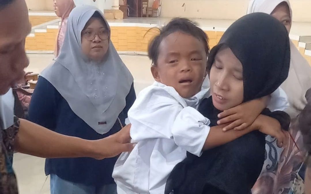 Proses khitan diwarnai suasana bahagia, haru bercampur tangis sejumlah anak. Para orangtua dibantu tenaga paramedis berusaha menenangkan anak- anak yang menangis dengan cara membaca doa, mengajak bercerita hingga menggendongnya.