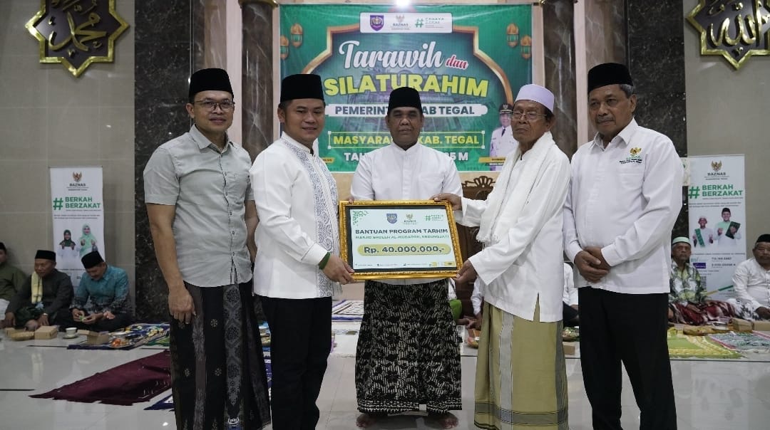 Bupati Tegal Ischak Maulana Rohman pada kesempatan itu menyerahkan bantuan dari Baznas Kabupaten Tegal senilai Rp40 juta. Bantuan tersebut didistribusikan untuk bantuan advokasi dan dakwah masjid setempat Rp 20 juta, santunan anak yatim dan dhuafa Rp5 juta dan konsumsi acara Rp15 juta.