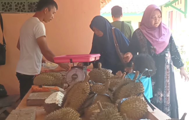 BREBES, smpantura- Kebun Durian Antapsari, di Desa Rajawetan, Kecamatan Tonjong, merupakan salah satu sentra berburu durian di Kabupaten Brebes. Saat musim durian seperti sekarang, pengunjung dari berbagai daerah berdatangan.