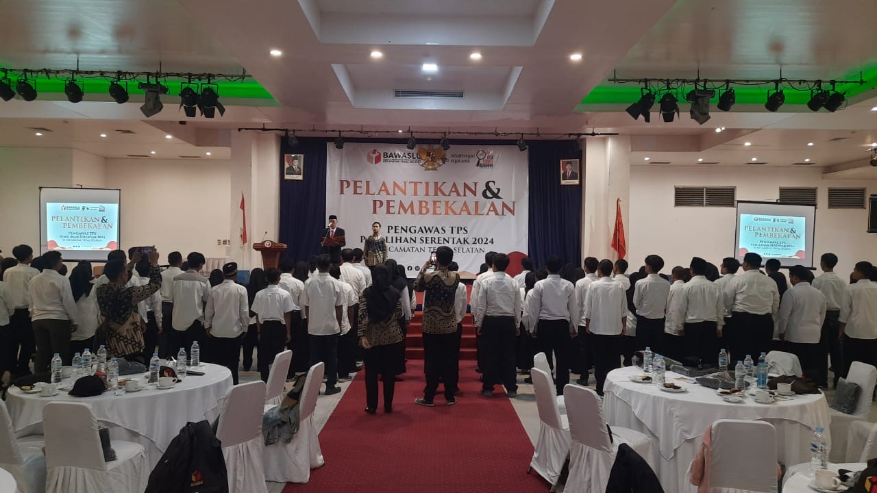TEGAL, smpantura – Pengawas pemilihan kecamatan (Panwascam) se-Kota Tegal secara serentak melantik 377 petugas pengawas tempat pemungutan suara (PTPS) di empat lokasi berbeda, Minggu (3/11/2024).