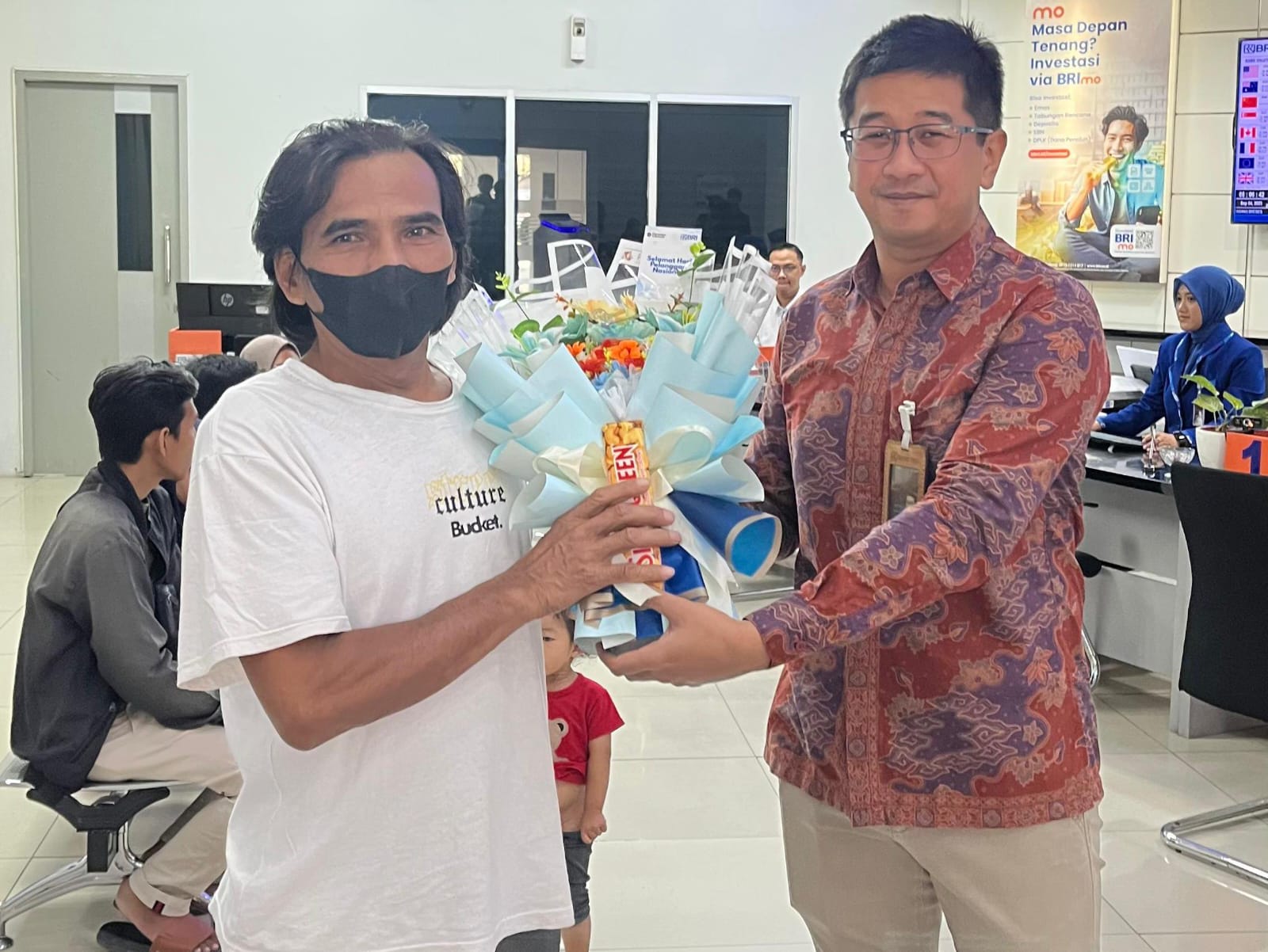 Pimpinan Cabang BRI Brebes, Fulsun Rachmatullah menyampaikan, apresiasi dan terima kasih dengan menyambut nasabah yang datang pertama di hari pelanggan tersebut.