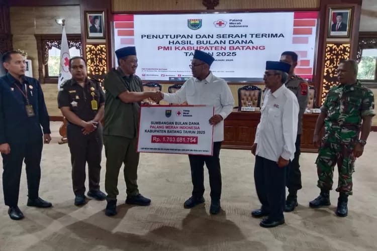 BATANG, smpantura – Palang Merah Indonesia (PMI) Kabupaten Batang menutup rangkaian Bulan Dana PMI tahun 2025 dengan capaian penghimpunan dana sebesar Rp 1.703.081.754,00 atau 96% dari target yang di tetapkan sebesar Rp 1.776.345.000,00. Penutupan sekaligus serah terima hasil Bulan Dana PMI tersebut digelar di Aula Bupati Batang, Kabupaten Batang, Selasa (6/1).