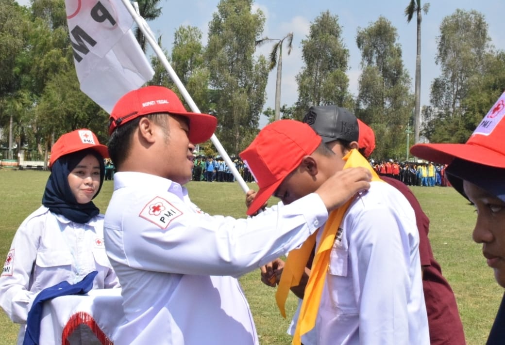 SLAWI, smpantura – Bupati Tegal Ischak Maulana Rohman mengukuhkan sedikitnya 4.133 pelajar sebagai anggota Palang Merah Remaja (PMR) Palang Merah Indonesia (PMI) Kabupaten Tegal, mulai dari tingkatan Mula, Madya, hingga Wira.