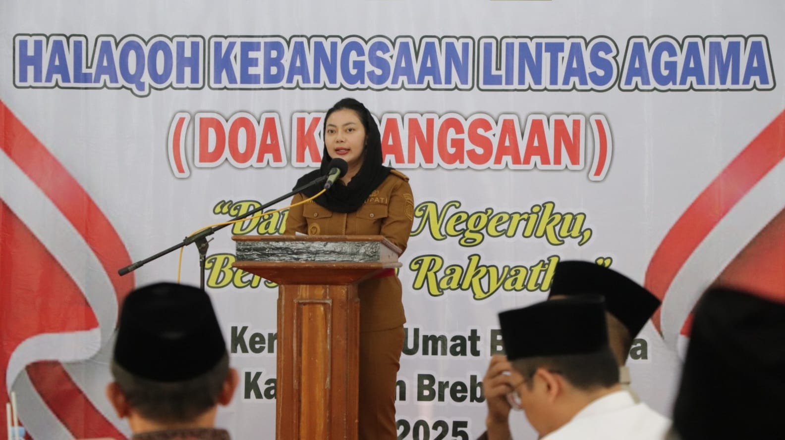 Bupati Brebes, Paramitha Wisya Kusuma dalam Halaqoh Kebangsaan Lintas Agama (Do'a Kebangsaan) di Kabupaten Brebes.