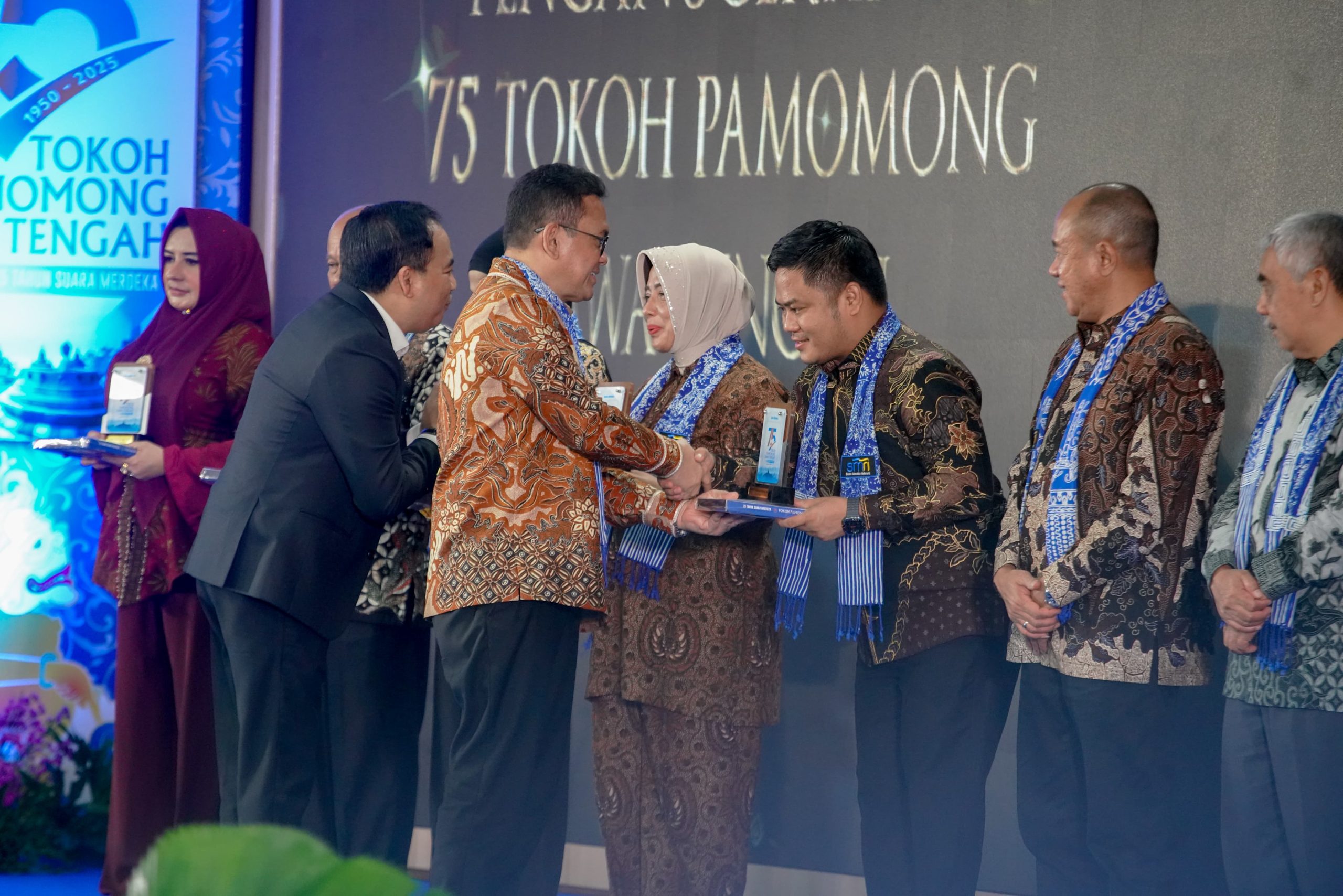 SEMARANG, smpantura – Suara Merdeka Network menggelar penganugerahan 75 Tokoh Pamomong Jawa Tengah dalam rangka Hari Ulang Tahun (HUT) ke-75 Suara Merdeka di Gedung Gradhika Bhakti Praja komplek Perkantoran Gubernur Jateng di Semarang, Jumat malam (25/7/2025). Bupati Tegal, H Ischak Maulana Rohman menjadi salah satu tokoh dari 75 tokoh Pamomong Jateng bersama beberapa kepala daerah, tokoh politik, tokoh agama dan para pengusaha asal Jateng.