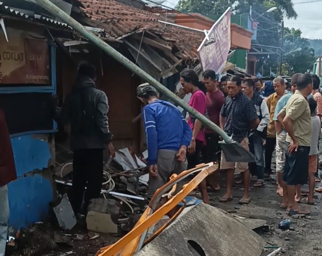BREBES, smpantura – Wasripah bersyukur, ia dan keluarganya selamat saat sebuah truk crane terguling dan menabrak rumahnya, Jumat (26/1) sekitar pukul 02.30.