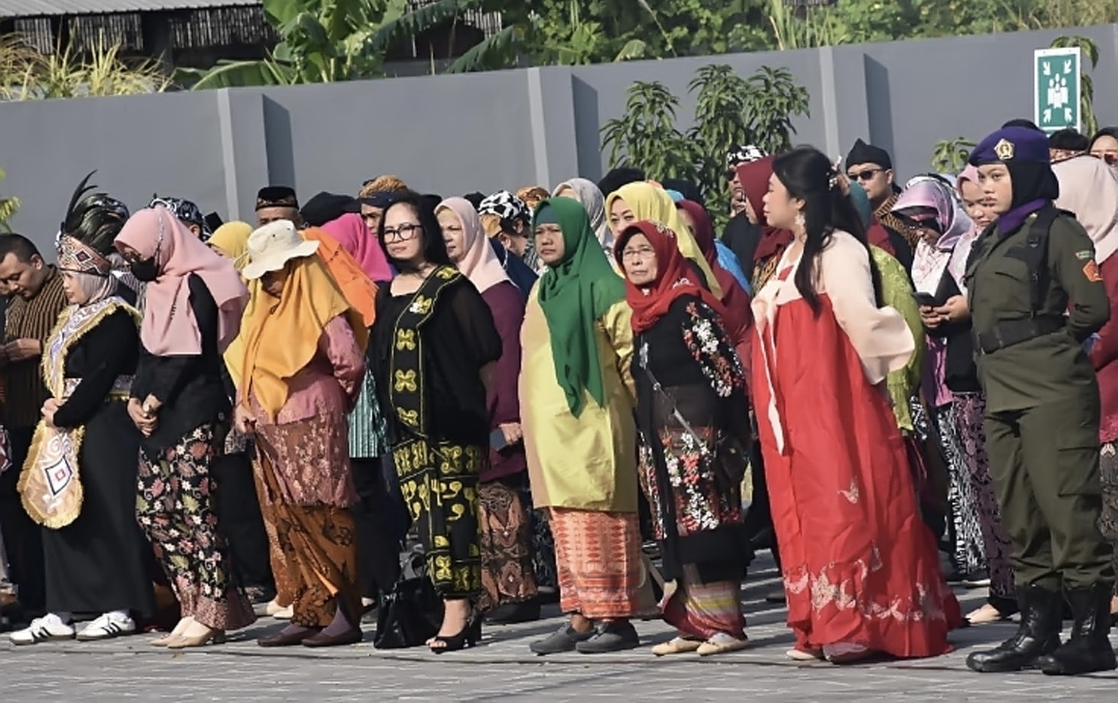 Mereka berpakaian adat nusantara, seperti dilakukan petinggi-petinggi negara di IKN.