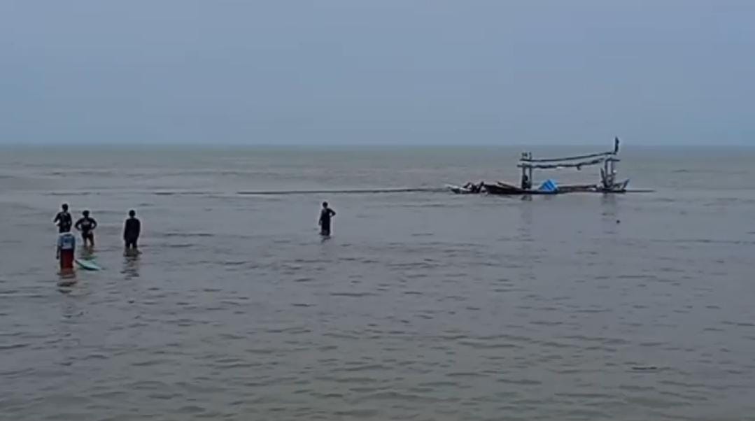 Kapal akhirnya menabrak batu pemecah gelombang dab mengalami kandas di depan pintu muara sungai Tanjungsari. Kondisi cuaca dalam beberapa hari terakhir kurang bersahabat untuk aktifitas melaut.