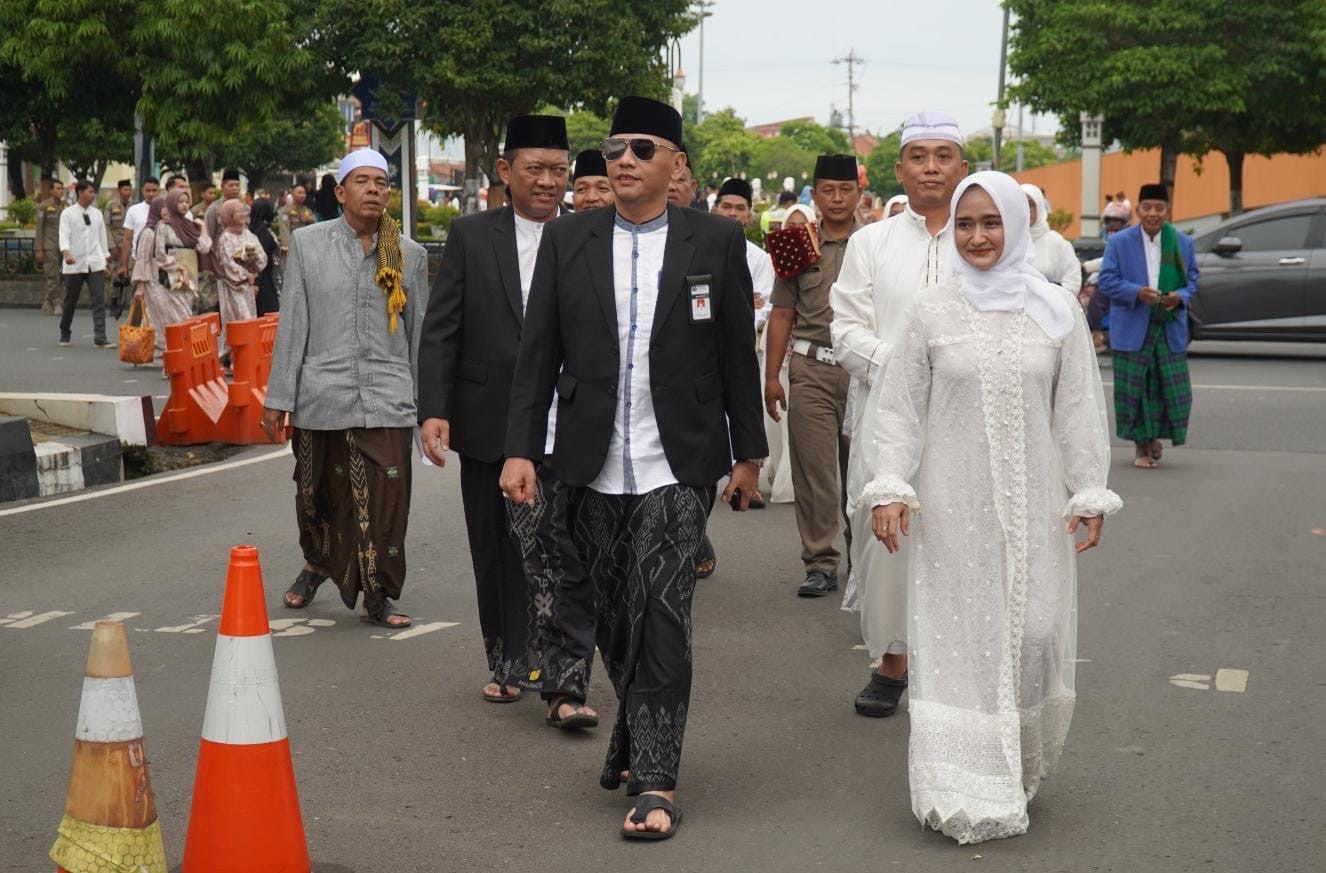 Hal itu disampaikan Dedy Yon saat memberikan sambutan saat mengikuti salat Ied di Masjid Agung bersama Wakil Wali Kota Tegal, Tazkiyyatul Muthmainnah, Senin (31/3/2025).