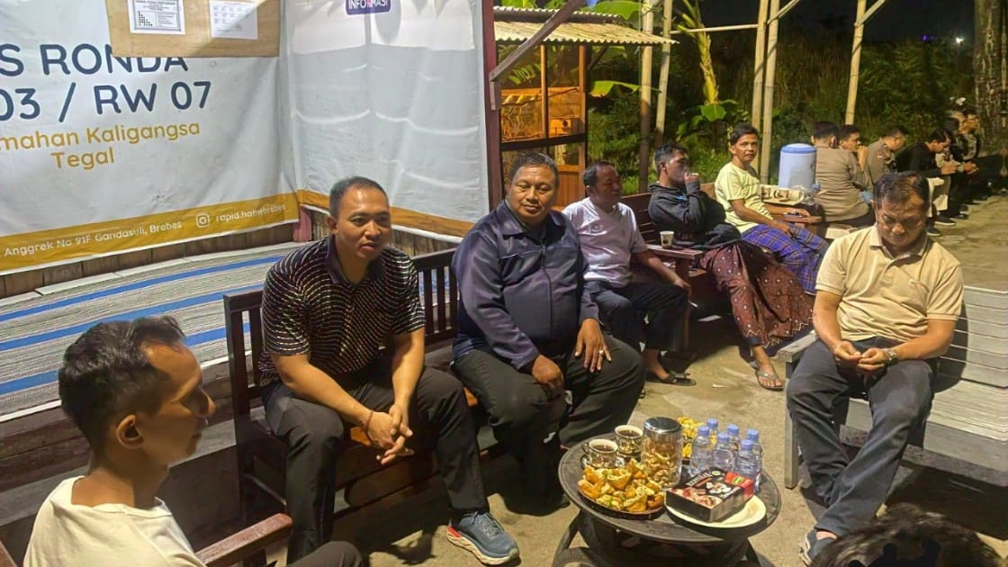 Saat menyambangi Pos Kamling, Kapolres Tegal Kota dan sejumlah personelnya berdialog santai dengan warga. Kapolres menekankan pentingnya keterlibatan aktif masyarakat dalam menjaga keamanan lingkungan.