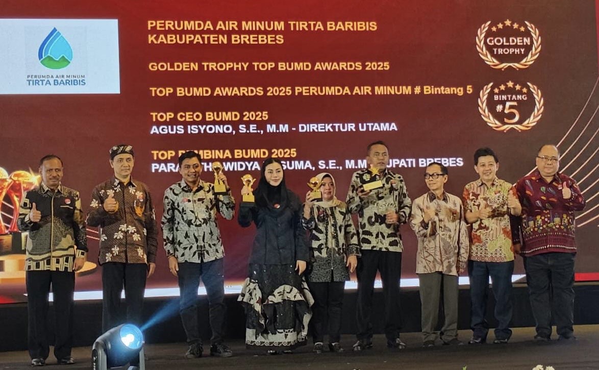 Dalam Top BUMD Awards tahun 2025 ini, tiga penghargaan sekaligus diraih, yakni Perumda Air Minum Tirta Baribis Brebes mendapat penghargaan Top BUMD Awards 2025 level bintang 5, Agus Isyono sebagai Ceo BUMD dan Bupati BrebesParamitha Widya Kusuma sebagai Pembina BUMD.