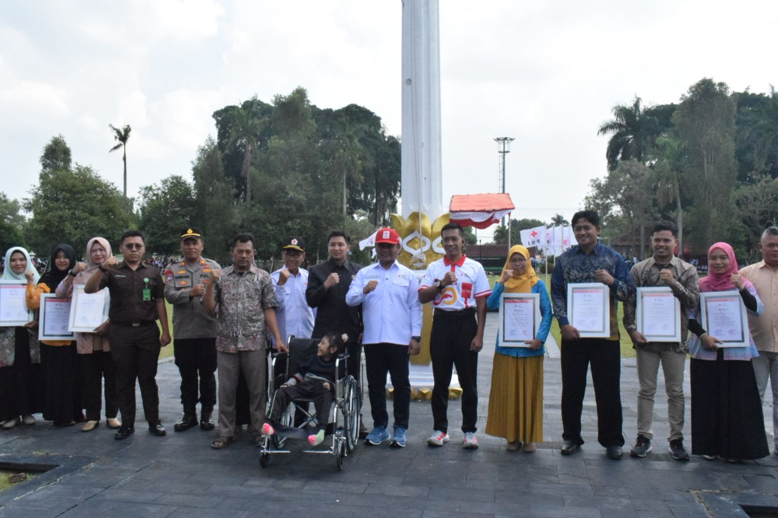 Penghargaan diserahkan oleh Bupati Tegal Ischak Maulana Rohman pada acara Upacara Peringatan HUT Ke-80 PMI Tahun 2025 dan Pengukuhan PMR se-Kabupaten Tegal di Lapangan Pemda Kabupaten Tegal, Minggu (21/9/2025).