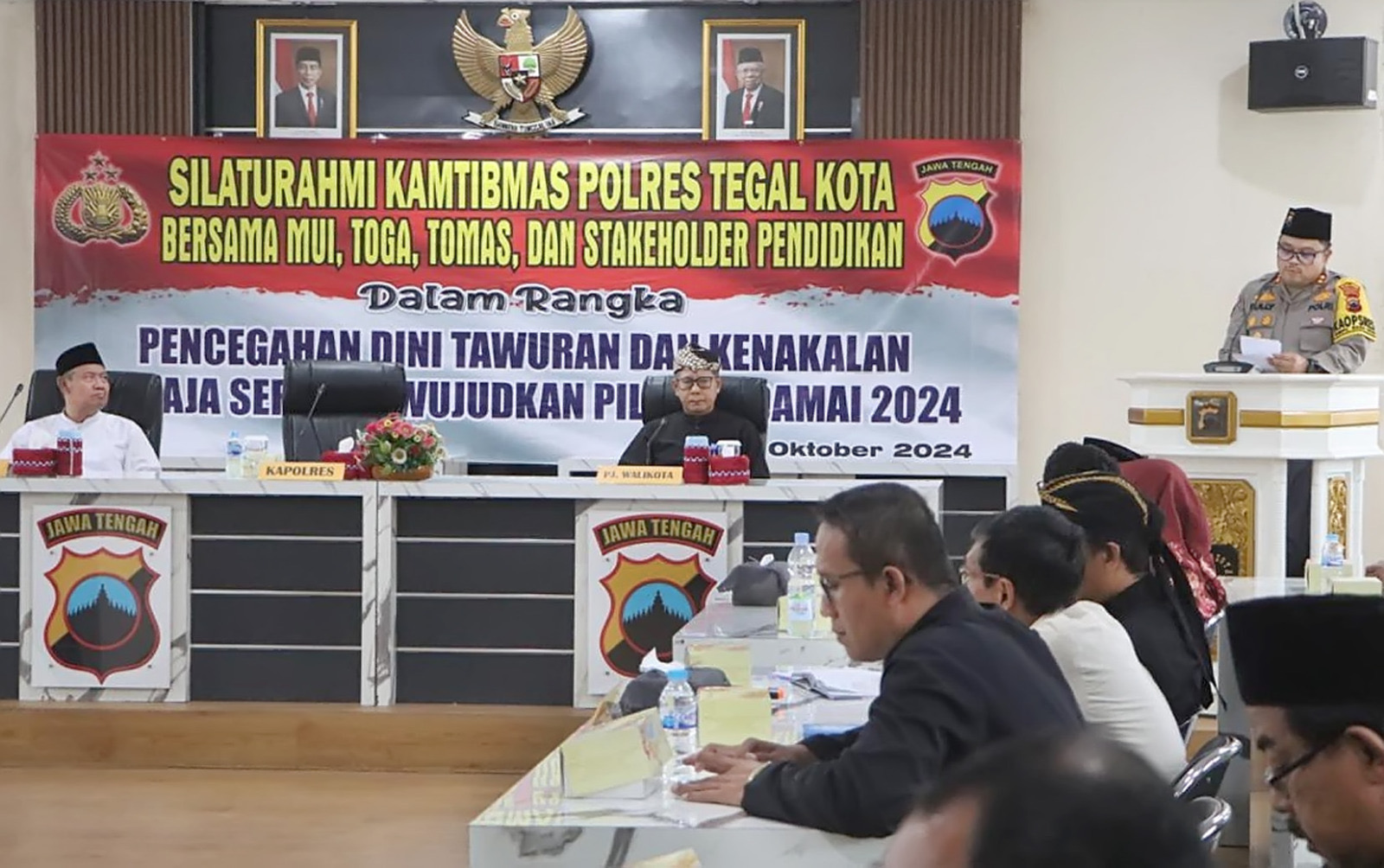 TEGAL, smpantura – Demi menciptakan Pilkada serentak yang aman, damai dan kondusif, Polres Tegal Kota menggelar silaturahim kamtibmas bersama Tokoh Agama (Toga) dan Tokoh Masyarakat (Tomas) Kota Tegal, di Aula Deviacita markas kepolisian itu, Kamis (3/10).