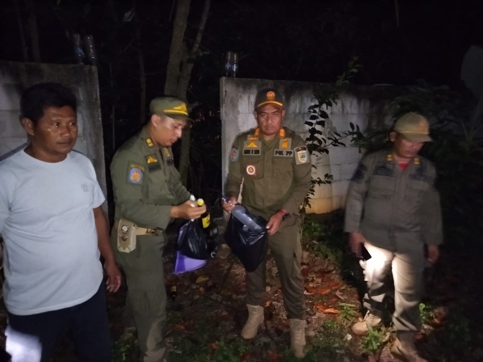 Petugas membawa barang bukti sebanyak botol miras yang didapat dari warung-warung tersebut. Untuk warung pertama, ada 16 botol, warung kedua sebanyak 13 botol, warung ketiga sebanyak 16 botol, dan warung keempat sebanyak delapan botol. Petugas juga memberikan pembinaan di lapangan kepada para pemilik warung, pengunjung dan pemandu lagu yang saat itu berada di lokasi.