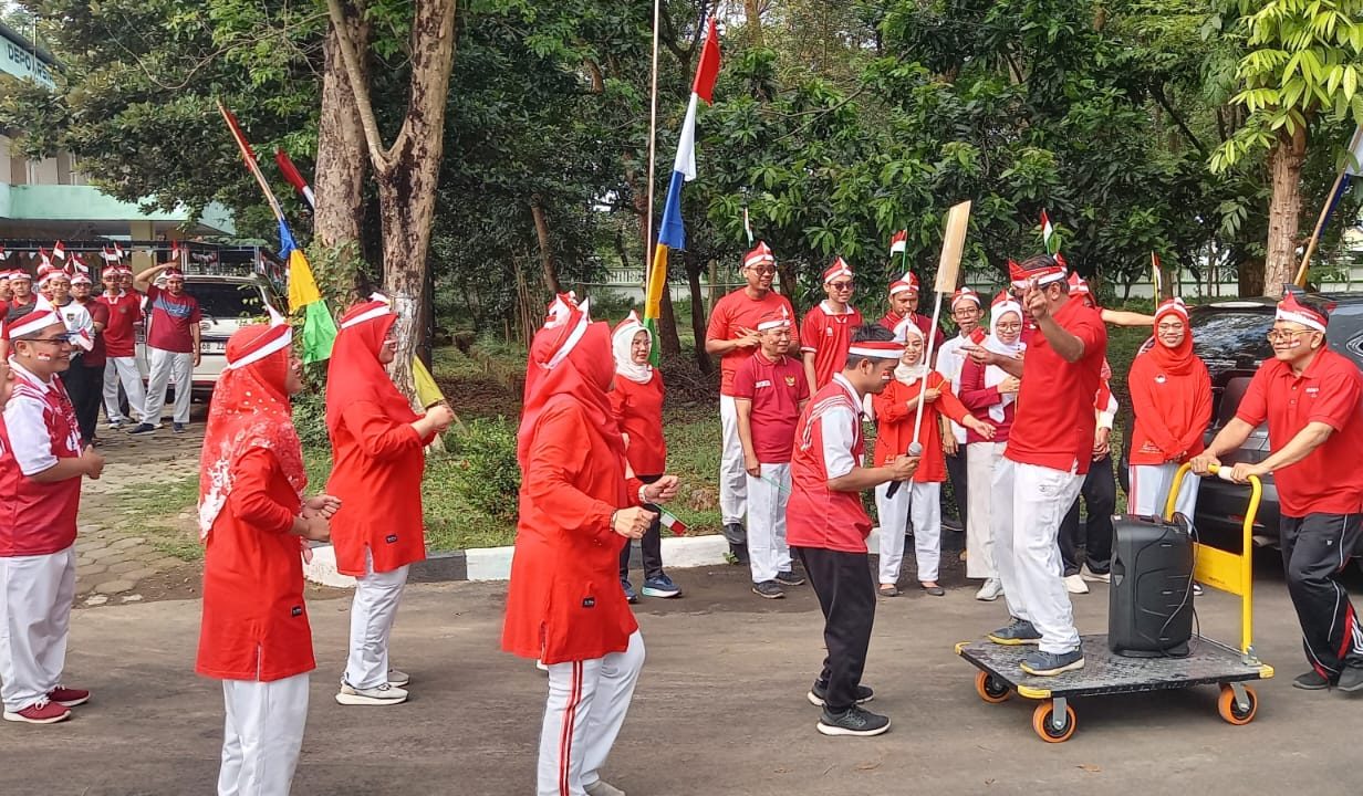 Puluhan karyawan mengenakan kostum bernuansa merah putih semangat mengikuti berbagai lomba yang digelar dalam rangka HUT ke-80 Republik Indonesia.
