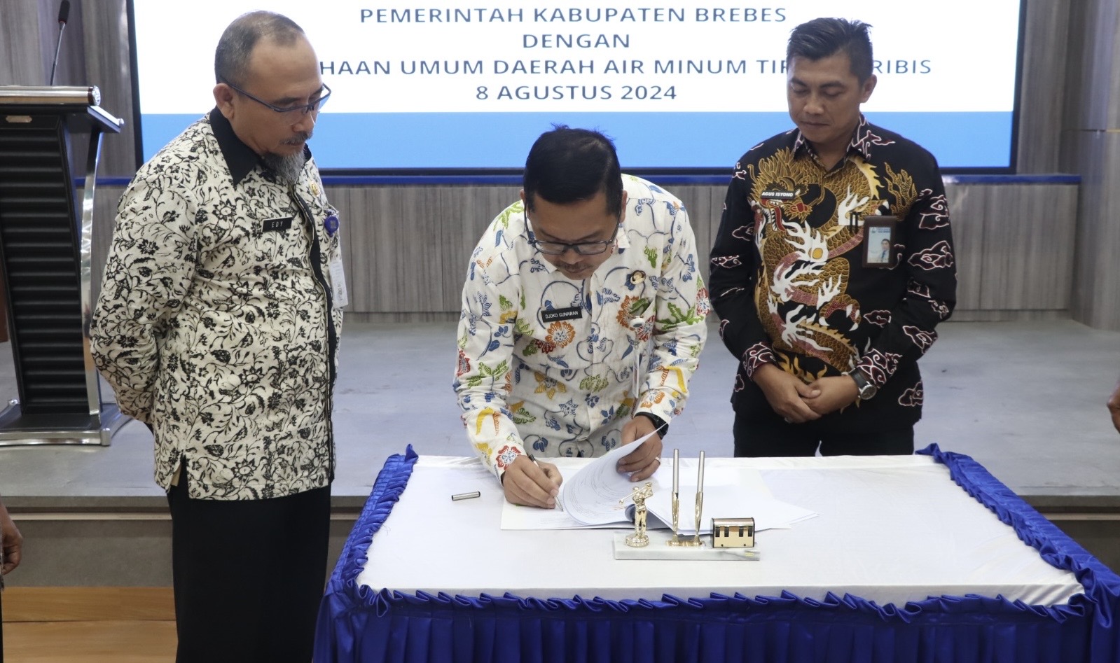 “Berdasarkan data Pemkab Brebes, tanah yang ada di Perumda Tirta Baribis ternyata belum diserahkan, makanya secara prosedur tahapan ini kita dilakukan,” kata Sekda Brebes Djoko Gunawan, usai Penandatanganan Berita Acara Serah Terima Penyertaan Modal Daerah Antara Pemerintah Kabupaten Brebes dengan Perumda Air Minum Tirta Baribis, di Aula Perumda Tirta Baribis Brebes.