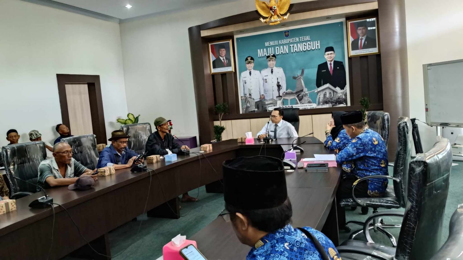 Belasan warga itu datang dengan dikomandoi tokoh masyarakat Kedungjati, M Syakur. Mereka ditemui Sekda Tegal Amir Makhmud, Kepala Inspektorat Kabupaten Tegal Saidno, Asisten Pemerintahan dan Kesra Sekda Tegal Susrpiyanti, Kepala Dispermades Kabupaten Tegal Teguh Mulyadi dan sejumlah pejabat lainnya.
