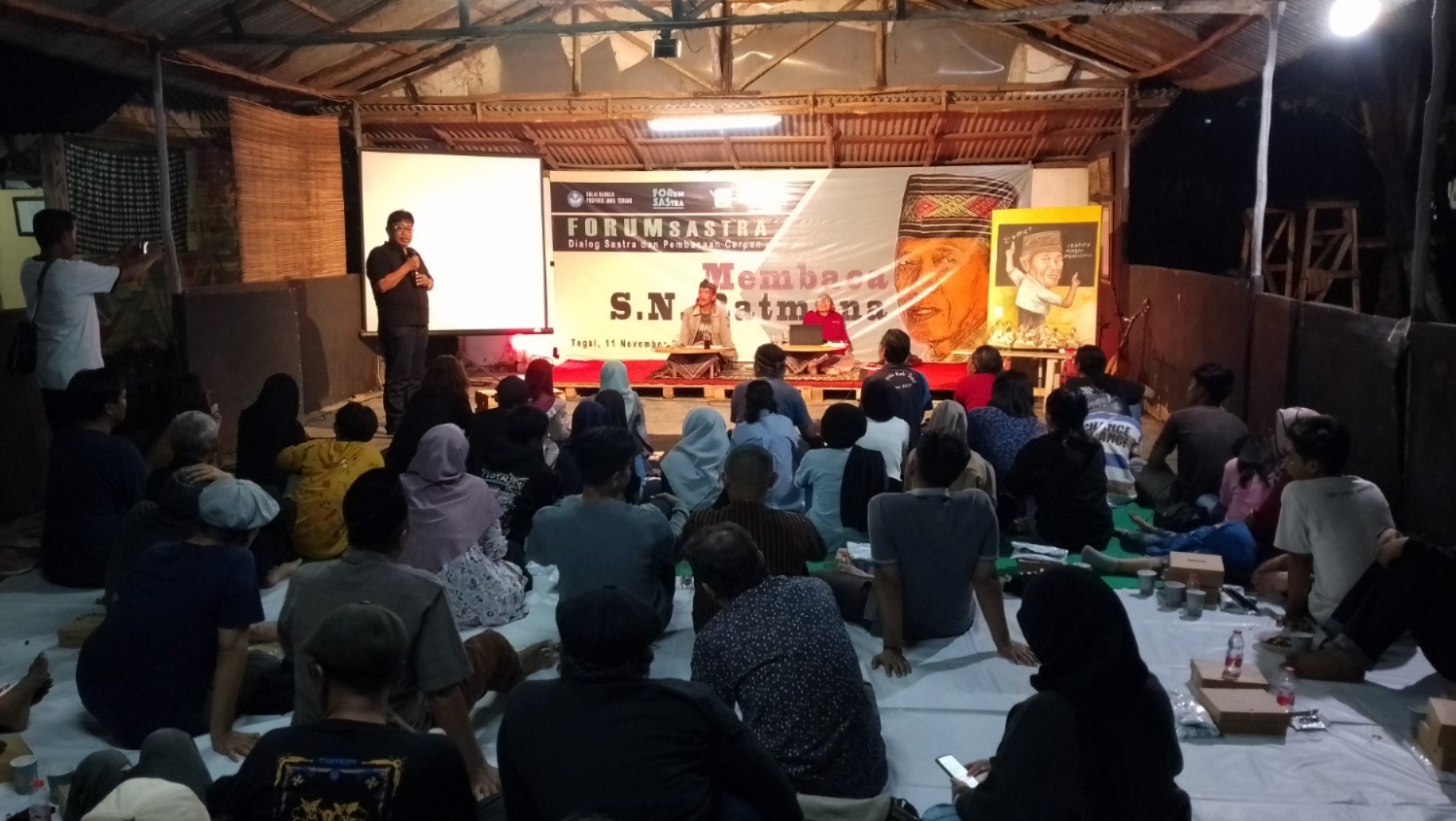 TEGAL, smpantura – Kampung Seni Tegal bersama Balai Bahasa Provinsi Jawa Tengah menggelar Forum Sastra dalam tajuk Membaca S.N Ratmana di Ruang Pertunjukan Kampung Seni Tegal, belum lama ini.
