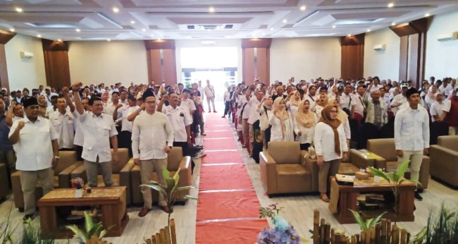 SLAWI, smpantura – DPC Partai Gerindra Kabupaten Tegal deklarasikan calon Gubernur Jateng yakni Sudaryono (Ketua DPW Gerindra Jateng), dan calon Bupati Tegal, Akhmad Kholid (Ketua Bapilu DPC Gerindra Kabupaten Tegal) dalam syukuran kemenangan Presiden dan Wakil Presiden RI Prabowo Subianto-Gibran Rakabuming Raka di Grand Dian Hotel Slawi, Kabupaten Tegal, Kamis (6/6). Ratusan kader Gerindra Kabupaten Tegal siap menangkan kedua calon tersebut.