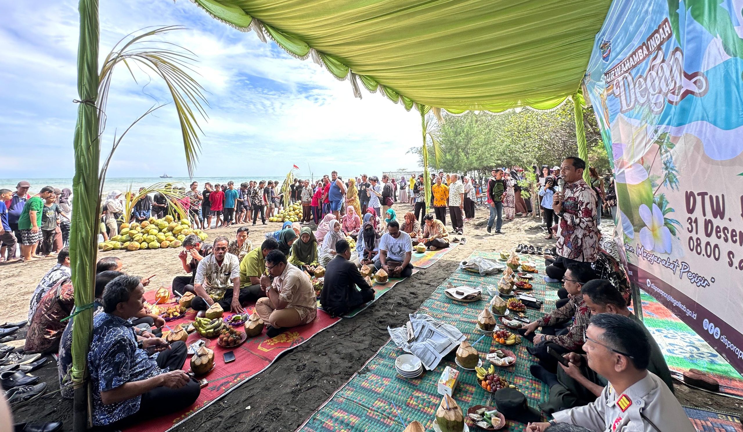 SLAWI, smpantura – Dinas Kepemudaan,Olahraga dan Pariwisata (Porapar) Kabupaten Tegal bersama Pokdarwis dan pedagang Pantai Purwahamba Indah menggelar Grebeg Degan (kelapa muda) di Pantai Purwahamba Indah (Purin), Suradadi, Selasa (31/12/2024). Acara itu merupakan bagian dari Ruwat Pantai Purin yang dilaksanakan rutin setiap akhir tahun.
