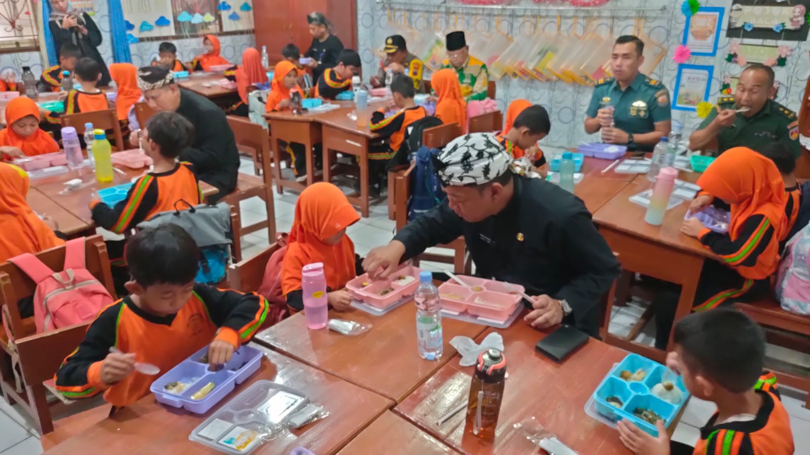 Saat duduk bersama siswa kelas I SD Negeri Mangkukusuman 7, mereka juga membujuk agar para siswa dapat mengabiskan menu yang disajikan termasuk olahan sayur.