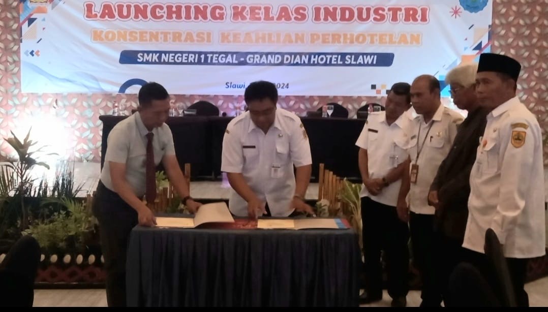 SLAWI, smpantura – Hotel Grand Dian Slawi, Kabupaten Tegal dan SMK 1 Tegal melaunching kelas industri konsentrasi keahlian perhotelan di Syailendra Convention Hall, Hotel Grand Dian Slawi, Rabu (31/7/2024).