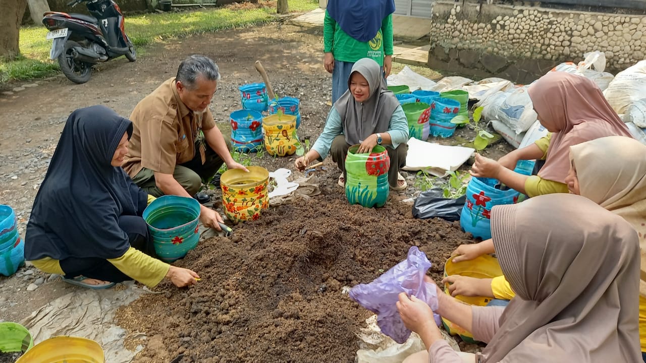 Meski baru pertama kali menanam sayuran , para istri karyawan ini terlihat semangat mencampur tanah, memindahkan bibit ke dalam pot termasuk merawat tanaman secara bergantian.
