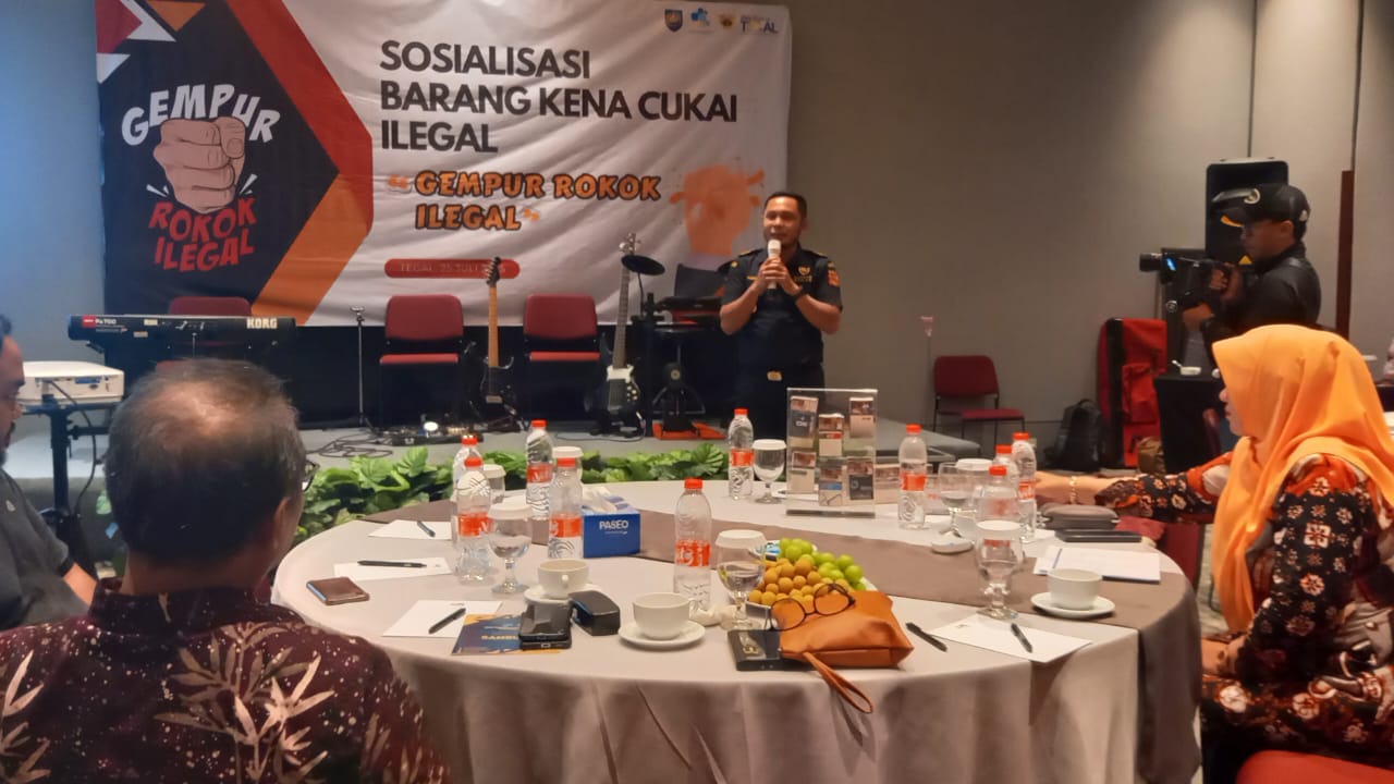 Hal ini mengemukaka pada Sosialisasi Barang Kena Cukai Gempur Rokok Ilegal yang diselenggarakan Dinas Komunikasi dan Informatika Kabupaten Tegal bersama Kantor Pengawasan dan Pelayanan Bea dan Cukai Tipe Madya Pabean C Tegal di Kotta Go Hotel, Kota Tegal , Jumat (25/7).