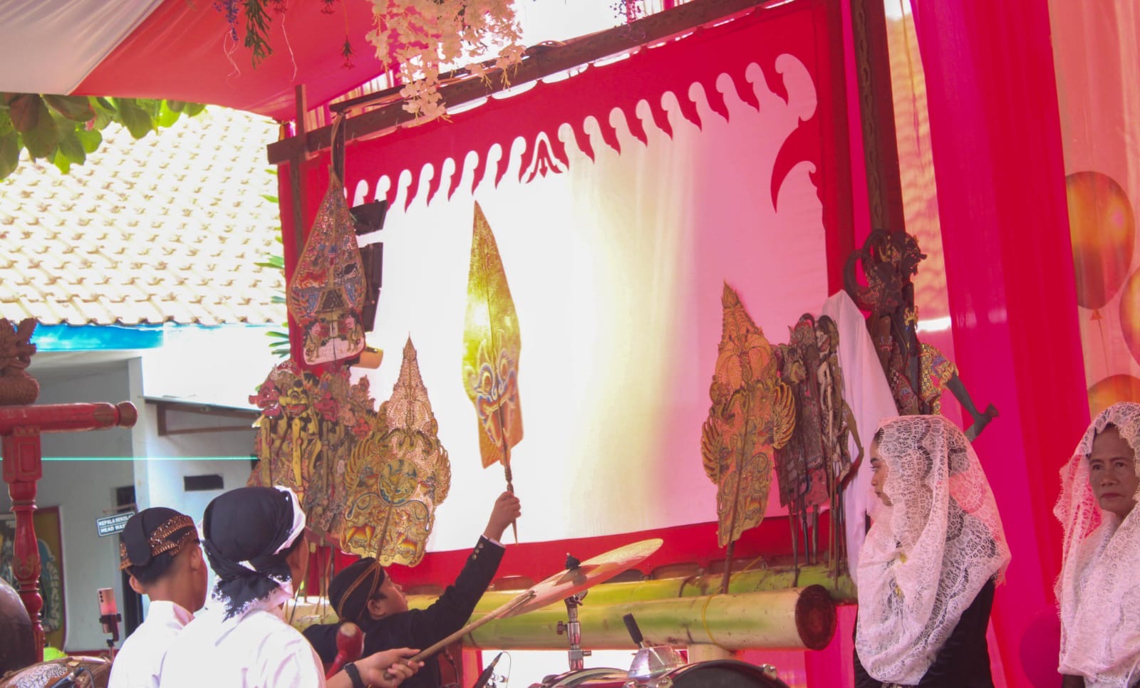 Suasana istimewa lebih lengkap, dan terlihat unik, diatas panggung berdiri tegak layar atau kelir untuk pertunjukan wayang kulit.