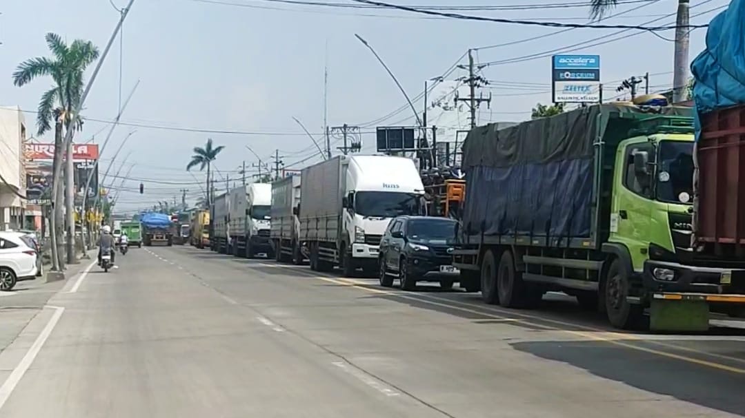 Antrean kendaraan mengular cukup panjang, di mulai dari perbatasan Kota Tegal dengan Kabupaten Tegal hingga pertigaan Coyo.