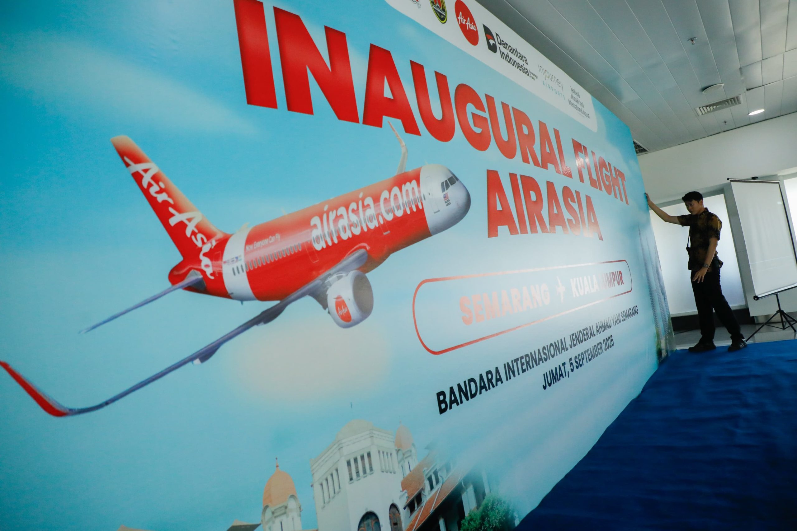 SEMARANG, smpantura – Bandara Internasional Jenderal Ahmad Yani resmi membuka penerbangan internasional perdana yang digagas Gubernur Ahmad Luthfi. Rute Kuala Lumpur (Malaysia) – Semarang pulang-pergi dengan maskapai AirAsia pada Jumat, 5 September 2025, mencatat okupansi penuh penumpang.