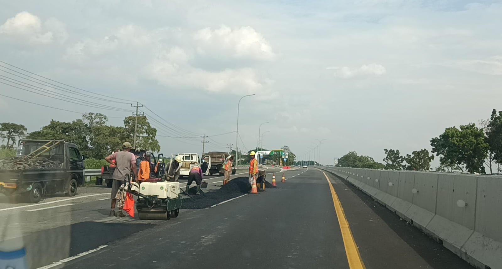 Pantauan smpantura.news Senin 1 Desember 2025, sedikitnya ada lima titik perbaikan yang sedang berlangsung. Tepatnya, mulai pintu Tol Pejagan hingga pintu tol Brebes Barat. Perbaikan ini di lakukan untuk jalur arah Jakarta maupun Semarang.