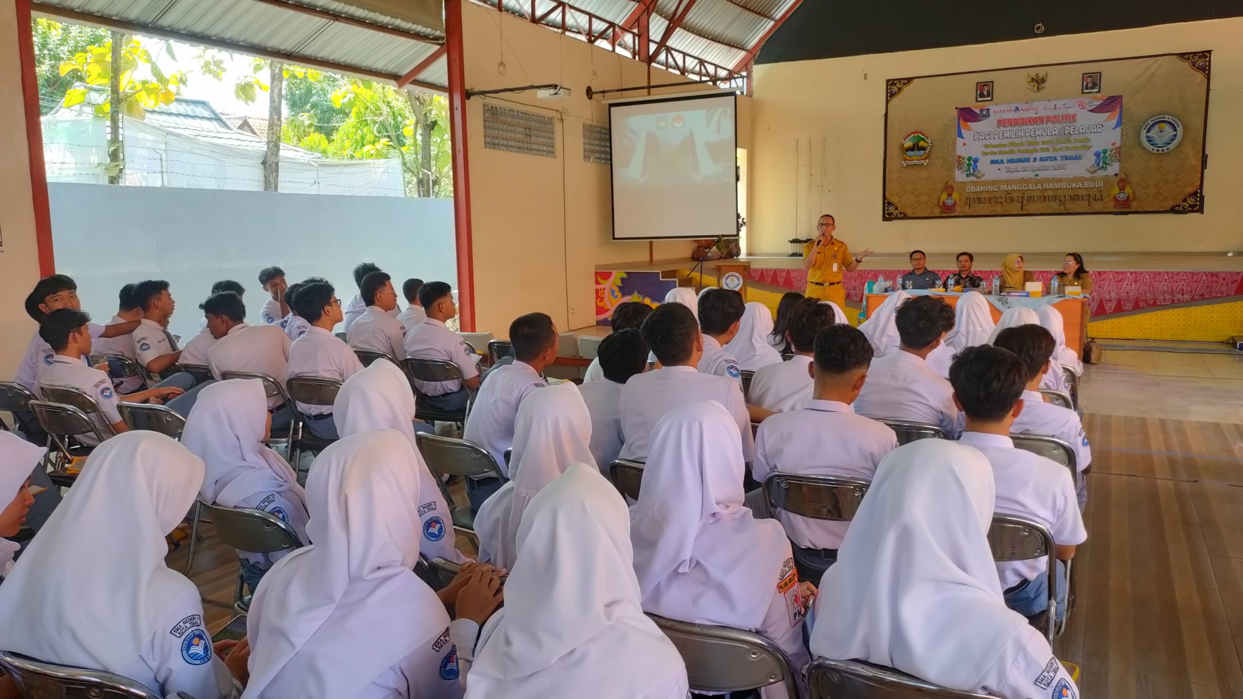 Pendidikan politik, akan diselenggarakan di tiga sekolah secara bergantian. Pada Senin (26/8/2024) digelar di SMAN 3, hari Selasa (27/8/2024) di SMKN 1 dan Kamis (29/8/2024) di SMKN 3 Tegal.